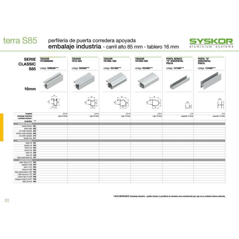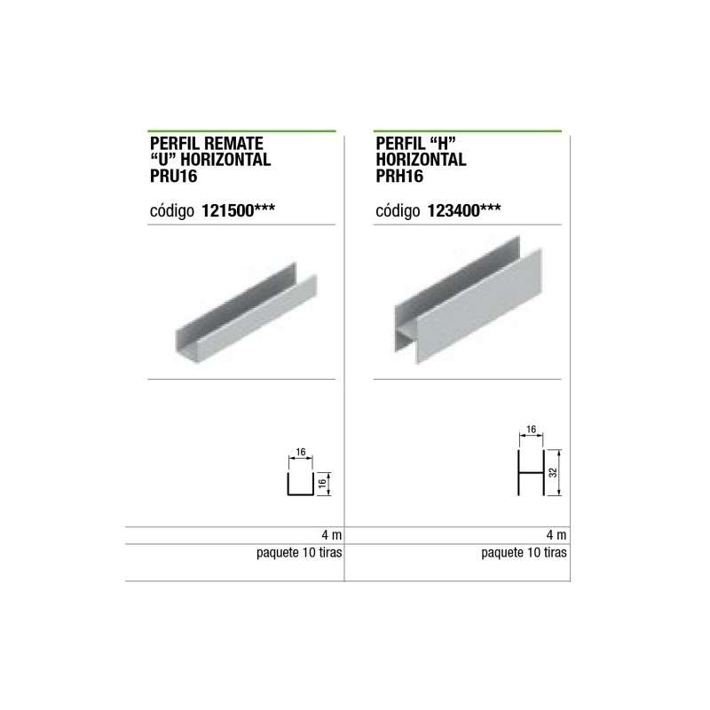 Ref. 123400A02 Perfil remate horizontal "H" acabado plata mate