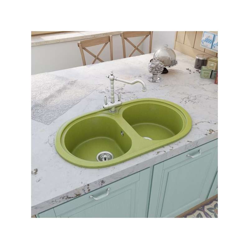 • Fregadero curvo de 2 cubetas redondas de gran capacidad.