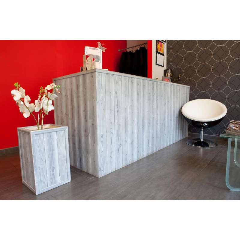 Revestimiento machihembrado de madera maciza para paredes y techos de uso interior, con resalte de veta y aplicación de productos al agua con distintas tonalidades en la misma pieza que potencia sus propiedades decorativas.