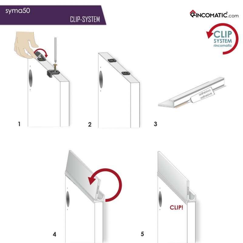 La gama Syma 50 del aclamado fabricante Rincomatic cuenta con tiradores de alta calidad y acabado que permiten un altísimo grado de personalización en la comunión entre puerta y tirador. Su sistema sin mecanización y sistema de instalación por clip facilitan el proceso de montaje hasta el extremo.